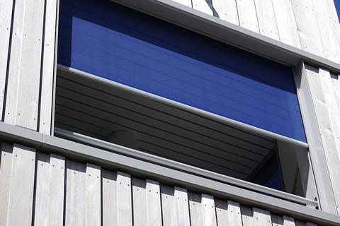 Die Standard-Senkrechtmarkise mit drei verschiedenen Seitenführungen. Die Auswahl zwischen einer Alu-Führungsschiene, einem Drahtseil in Inox-Qualität oder einer Stangenführung aus Chromstahl lässt dem Architekten viele Möglichkeiten offen. Die kompakte Bauart mit Alu-Kasten erlaubt den Einsatz an Balkonen und Wintergärten genauso wie als Gestaltungselement in der modernen Fassaden-Architektur. Deckenmontage oder als Selbsttragsystem an Fassade vorgehängt. Der Typ VERTICAL (ohne Kasten) eignet sich für den Einbau in einen Sturz.